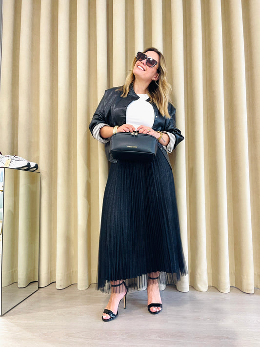 SAIA PLISSADA REVERSÍVEL COM BRILHO