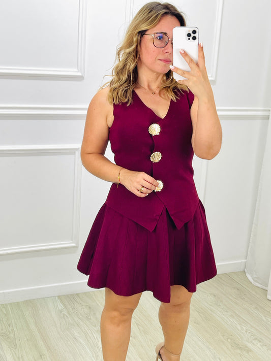 CONJUNTO COLETE E SAIA PREGAS