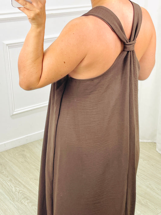 VESTIDO MACRAMÉ TELHA