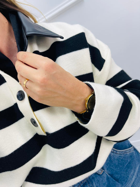 EsgotadoCAMISOLA MALHA RISCAS COM GOLA PRETA