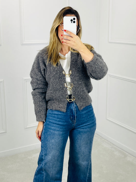 EsgotadoCARDIGAN CASTANHO COM AZUL