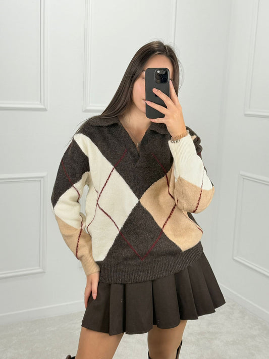 CAMISOLA DE MALHA COM PADRÃO LOSANGOS EM TONS PASTEL
