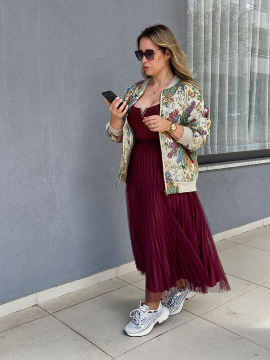 SAIA PLISSADA REVERSÍVEL COM BRILHO