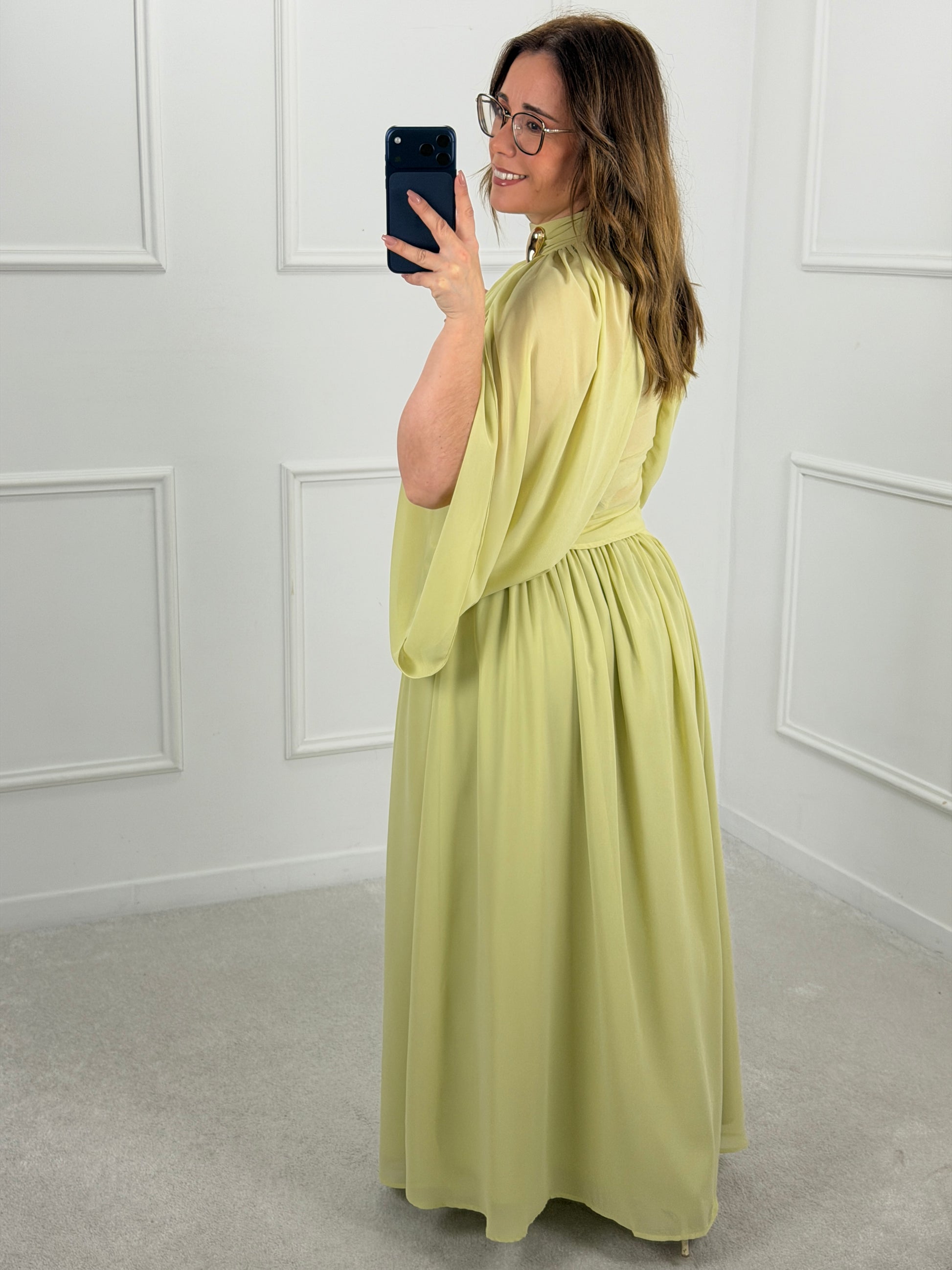 Um vestido leve e cheio de movimento, perfeito para os dias em que quer sentir-se confortável sem perder o estilo . O tom verde traz frescura ao look e destaca-se de forma elegante. O corte fluido adapta-se ao corpo de forma natural, criando uma silhueta feminina e descontraída ao mesmo tempo.