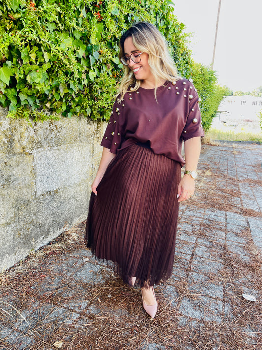 SAIA PLISSADA REVERSÍVEL COM BRILHO