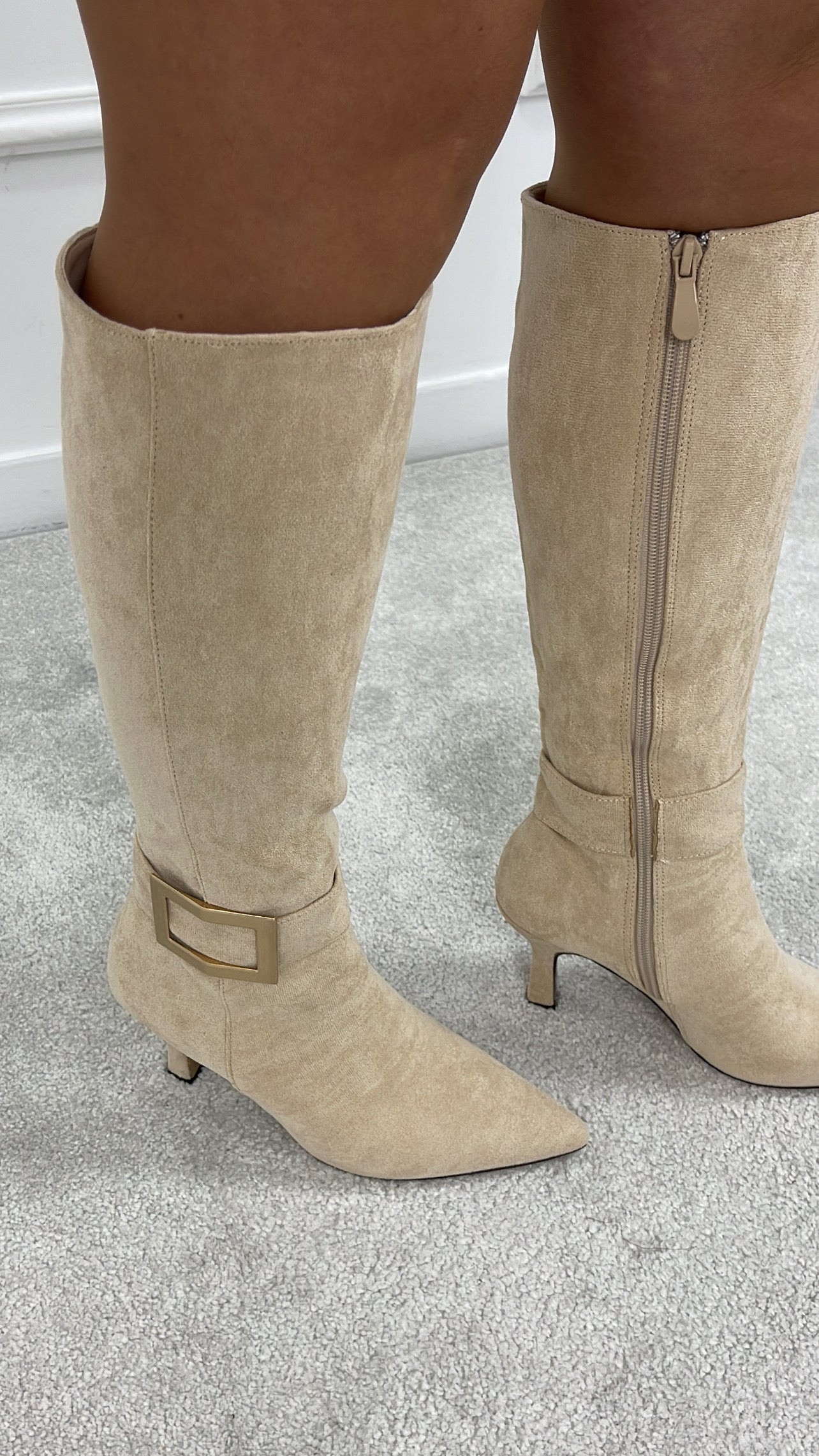BOTA BEGE DE CANO ALTO COM FIVELA