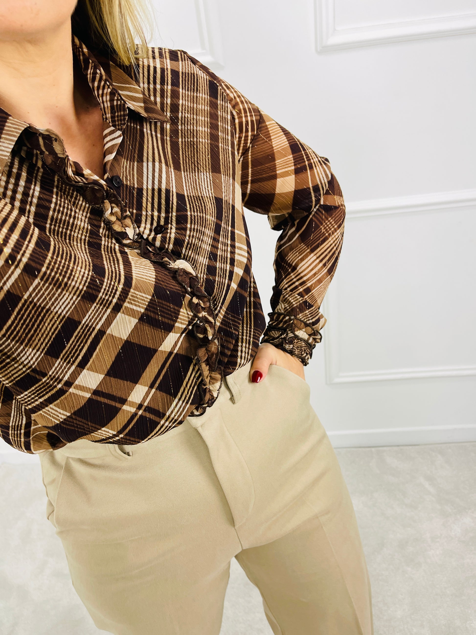 Com um leve brilho dourado, que adiciona um toque elegante e sofisticado à peça.