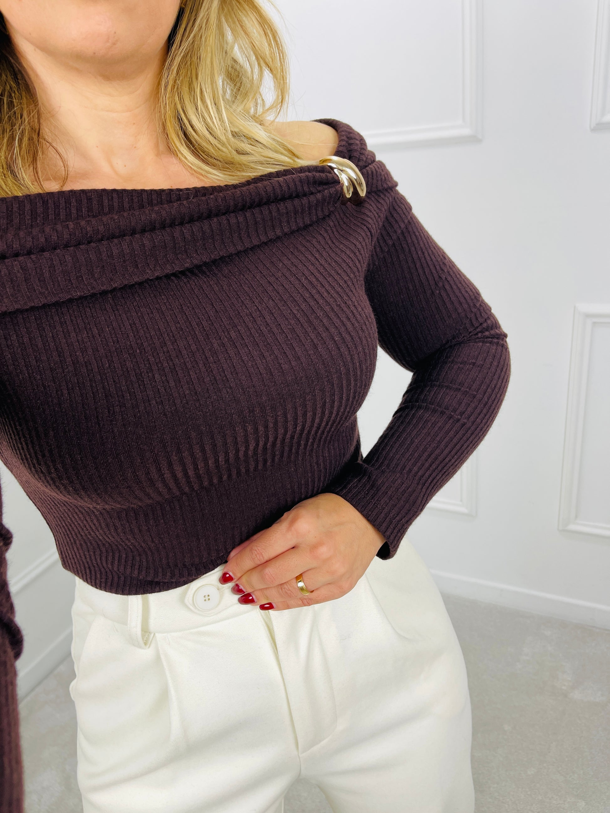 CAMISOLA MALHA CASTANHA DETALHE GOLD