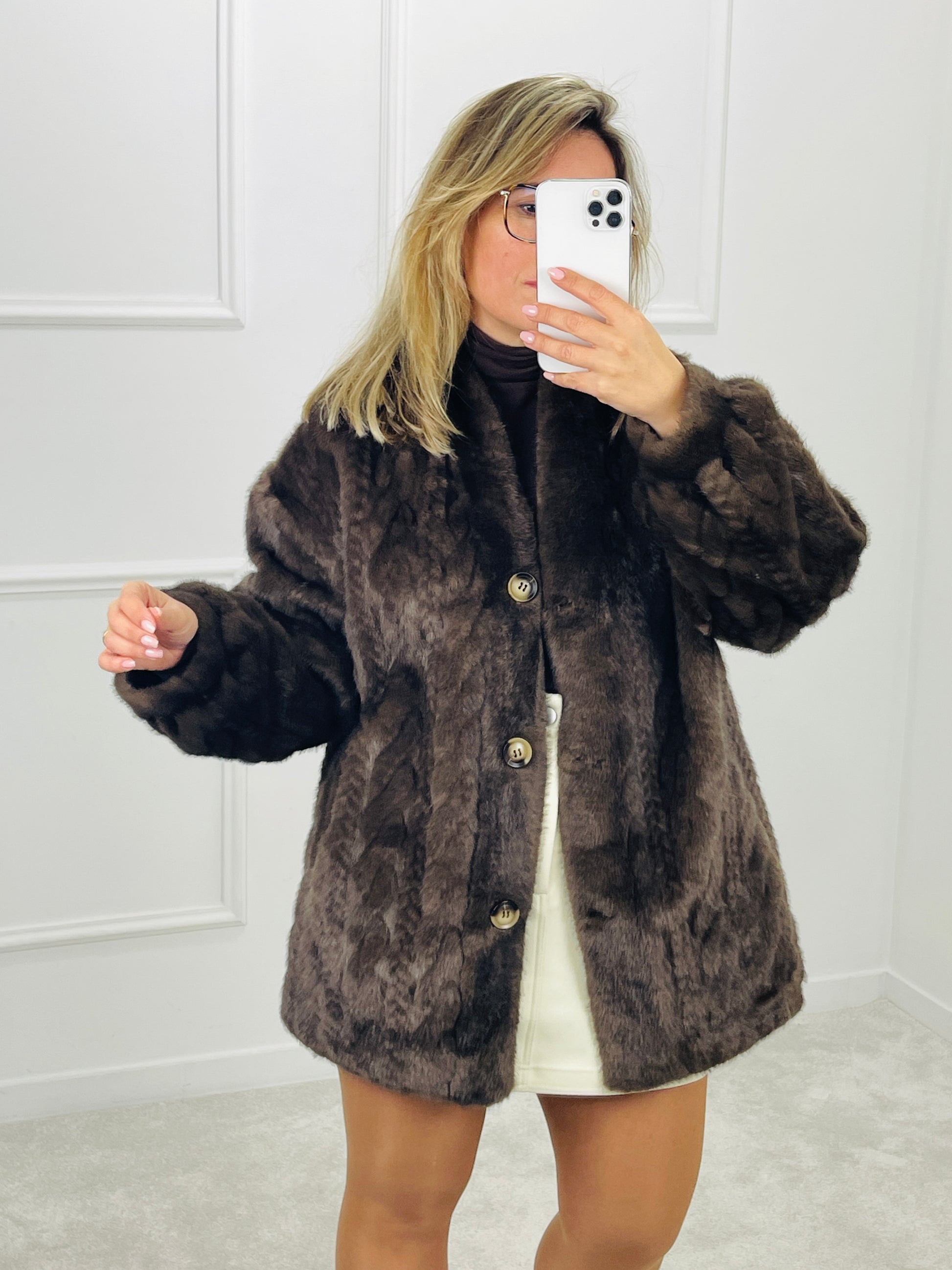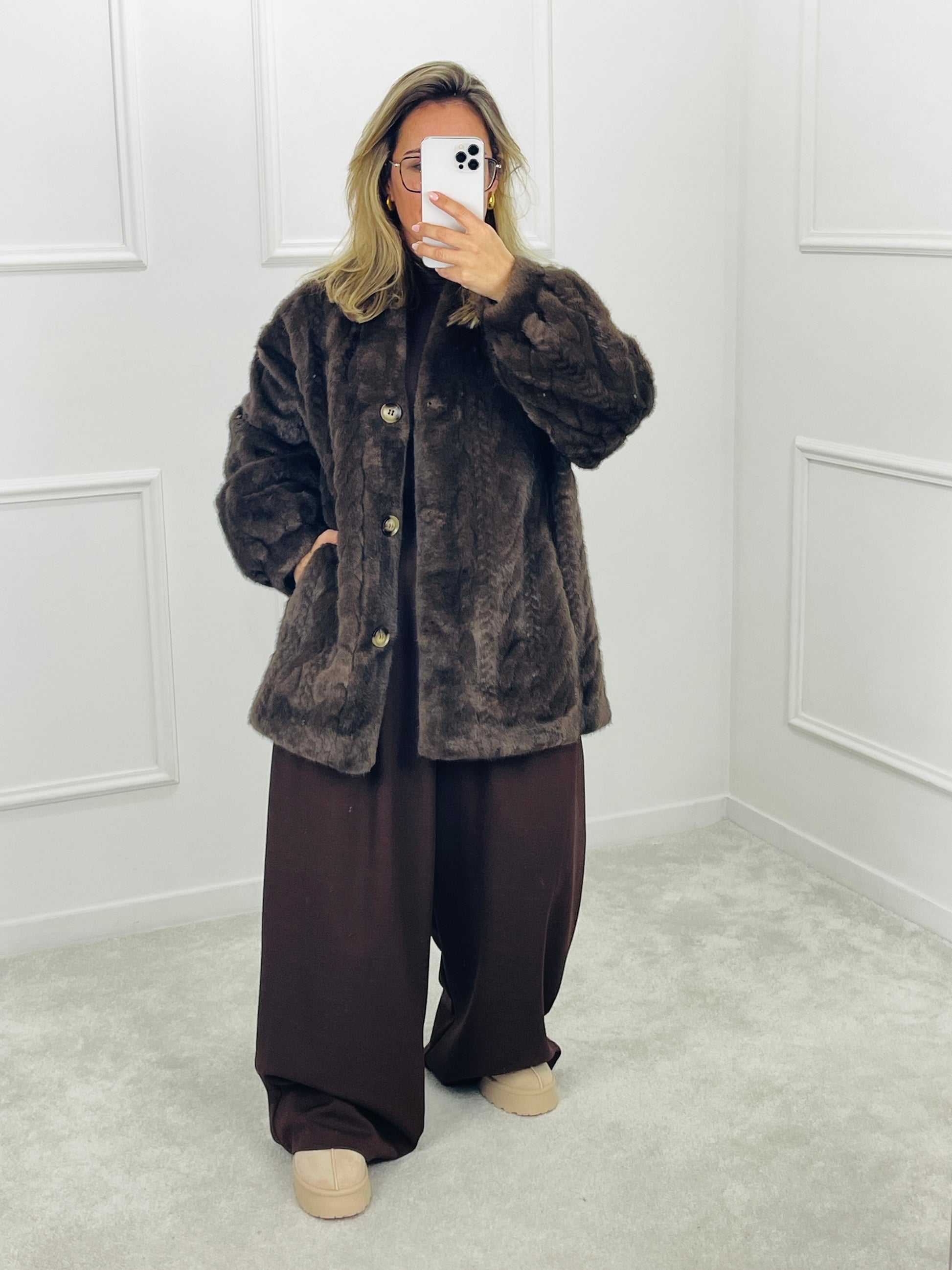 CASACO DE PELO COM PADRÃO ENTRANÇADO