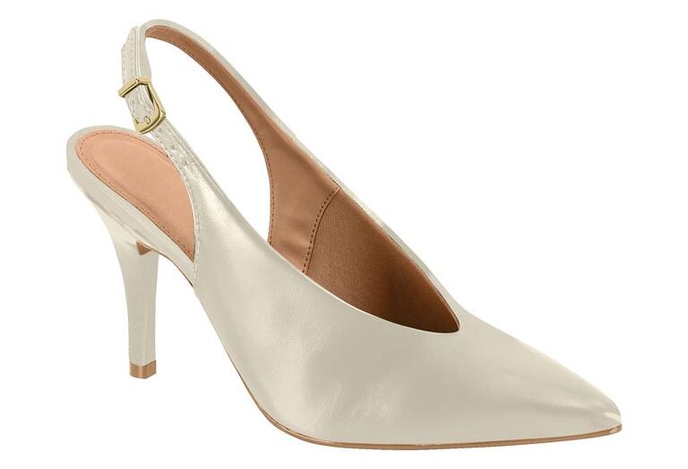 Sapato em tom cru, com design sofisticado e aberto atrás, ideal para cerimónias, eventos especiais ou para elevar um look mais clássico.