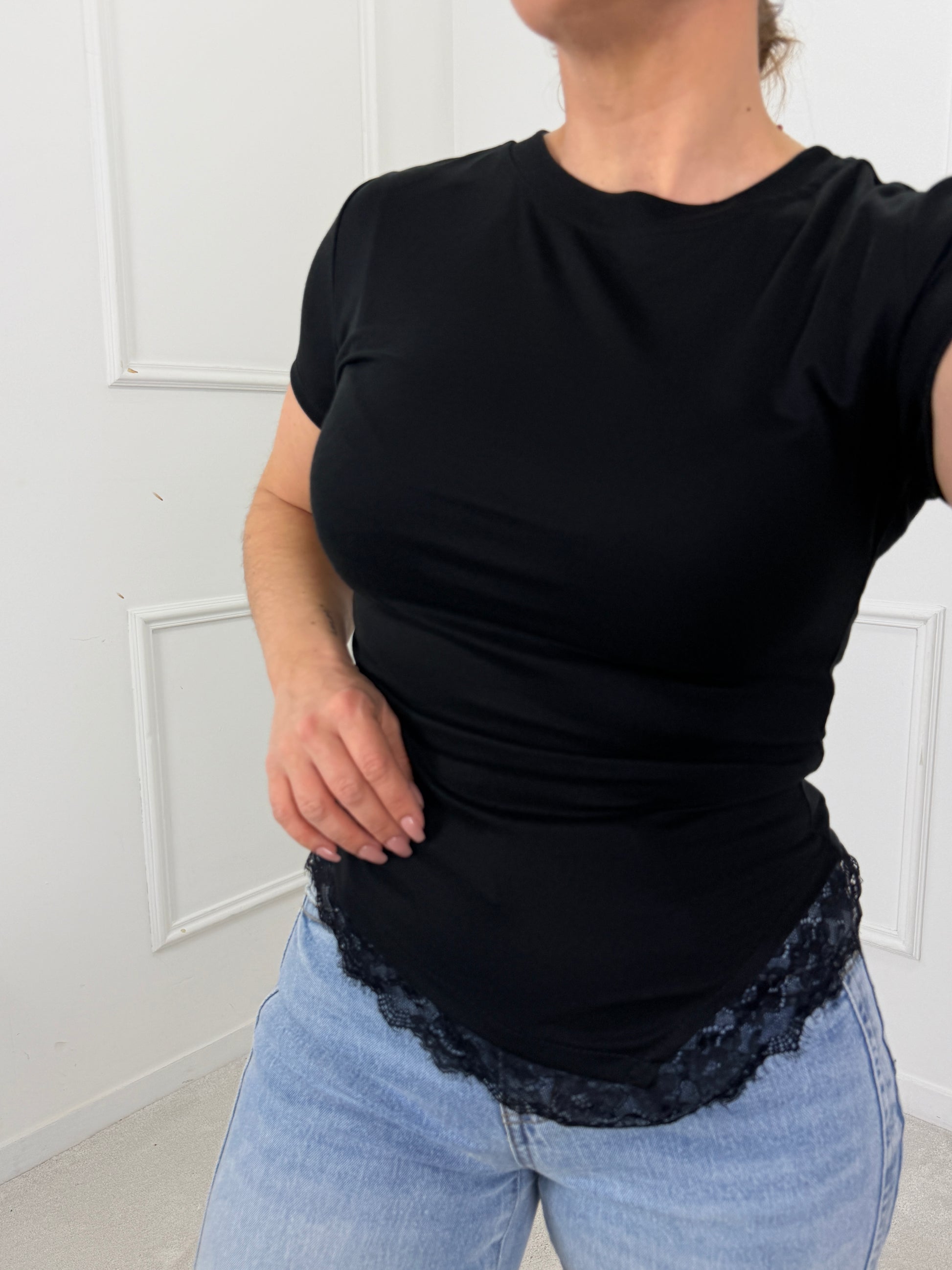 T-SHIRT CANELADA COM RENDA